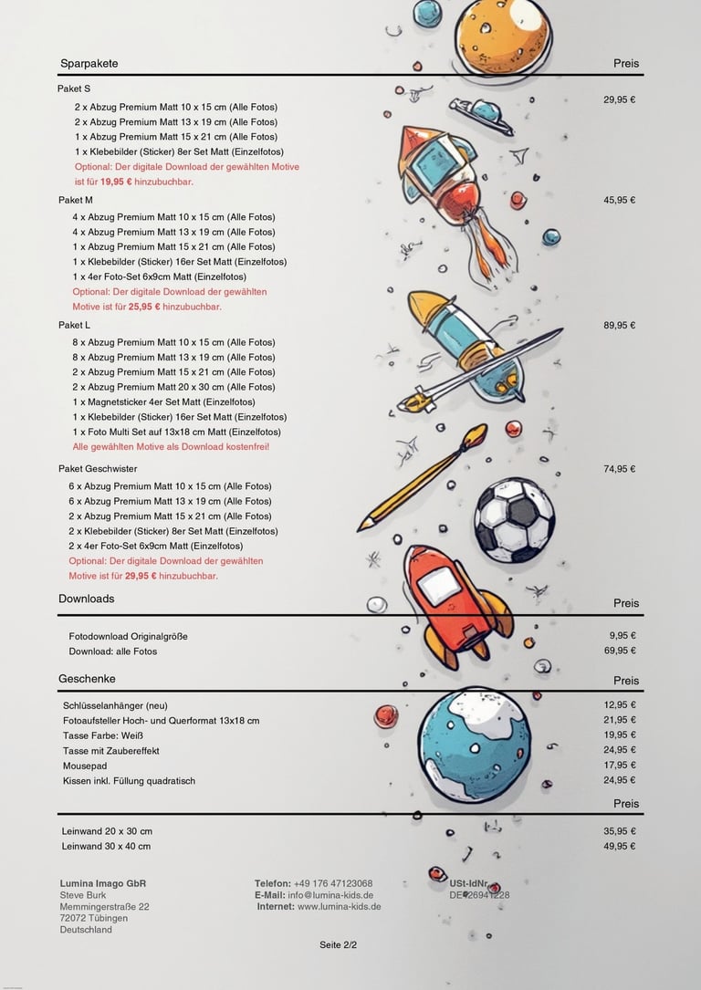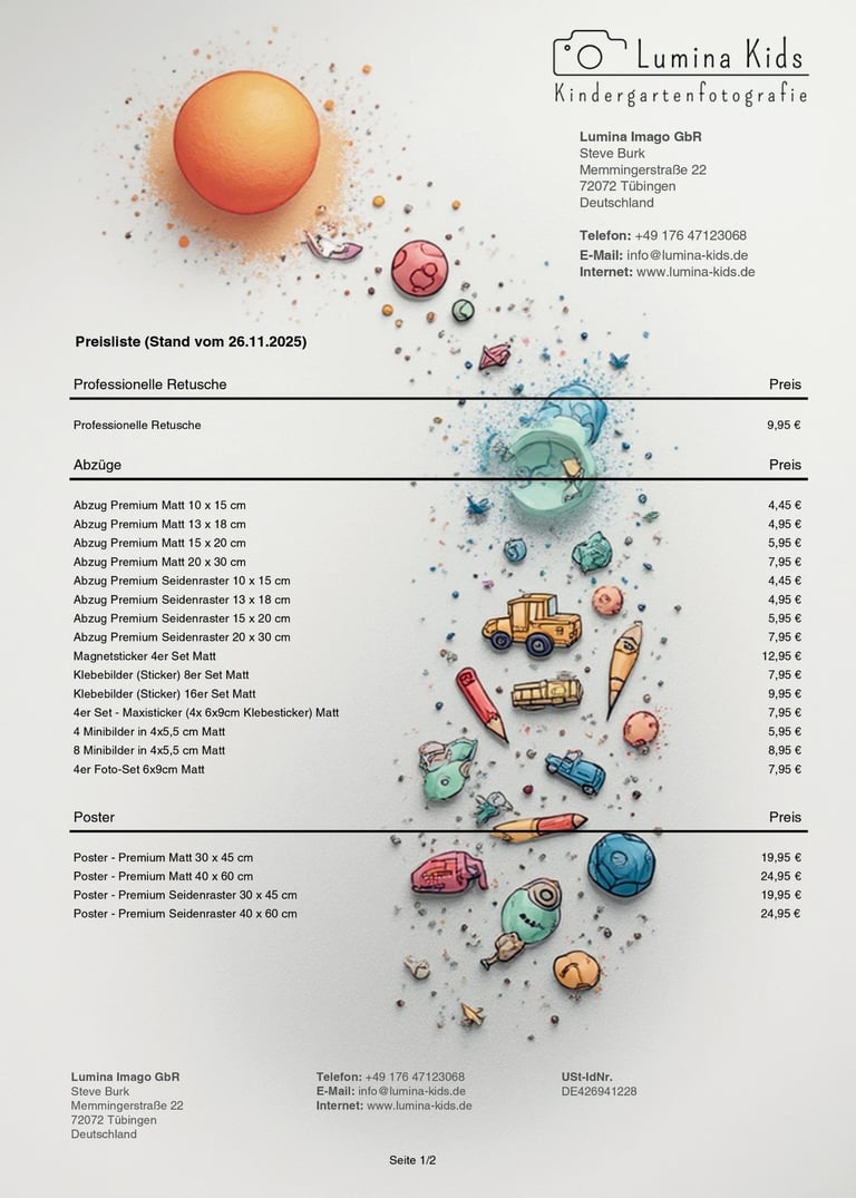 Das anfertigen der Bilder ist sowohl für Kindergarten als auch für die Eltern kostenfrei. Die Eltern erhalten nach den Fotoshootings eine Galerie über die Sie ihre Bilder bestellen können. Somit zahlt ihr als Eltern nur das was euch gefällt. Unsere aktuelle Preisliste findet ihr hier.